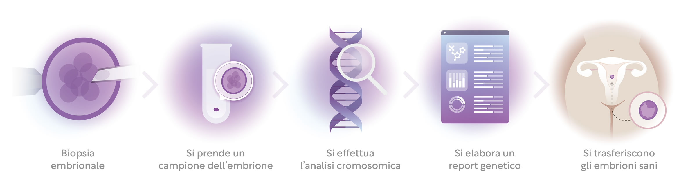 - Ridurre il rischio di aborto, nell’evitare il trasferimento di embrioni con scarsa probabilità di impianto.